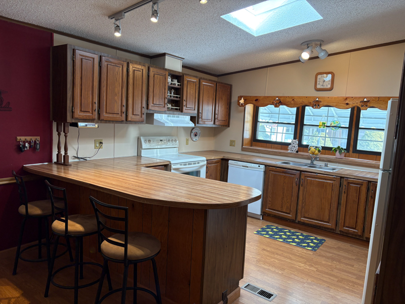 This 1985, Rochester Home has a Foyer with a Coat Closet & a Large Front Living Room with a Ceiling Fan. The Front Kitchen has a Peninsula with a Snack Bar & Tracking Lighting, Stainless Steel Sink, Box out Bay Window in Front with a Ledge, Raised Panel Cabinets, Pantry Cabinets with a Microwave Shelf & Pull-outs, Under the Cabinet Radio, Frigidaire Refrigerator & Electric Stove, Dishwasher needs repair or to be replaced, Garbage Disposal, Newer Hood Fan, & Skylight. The Large Dining Room has a Pantry. The Laundry Room has a Whirlpool Washer & Dryer with Cabinets above for Storage & a Steel Door with a Storm Door out to the Carport. The Back Master Bedroom has a Large Walk-in Closet with Extra Shelving, a Ceiling Fan, & a Door wall out to the Back Patio. The Master Bathroom has a Porcelain Sink, Medicine Cabinet, Linen Cabinets, & Newer Stall Shower with Seats & Nice Doors. Bedroom 2 is a Great Size & has a Ceiling Fan & a Large Walk-in Closet. The Main Bathroom has a Porcelain Sink, a Skylight, & a Newer Stall Shower with Seats & Nice Doors. This Home also includes Drywall in the Living Space, Pergo Floors Through-out, Blinds & Window Treatments, a 200 Amp Electrical Panel, a New Hot Water Heater in 2021, Newer Roof, Skylights, Furnace & Air, Newer Underbelly & Insulation 5 yrs ago, is Nicely Painted, Awnings, Gutters, Nice Landscaping, Lattice at Front Door Sidewalk with Landscaping for Privacy, Back Covered Patio with Lattice for Privacy, Full Carport with Lattice, Very Large Shed with Electric, Work Bench, Shelving, & Back Door out to Back Yard, & is on Ground Level.
