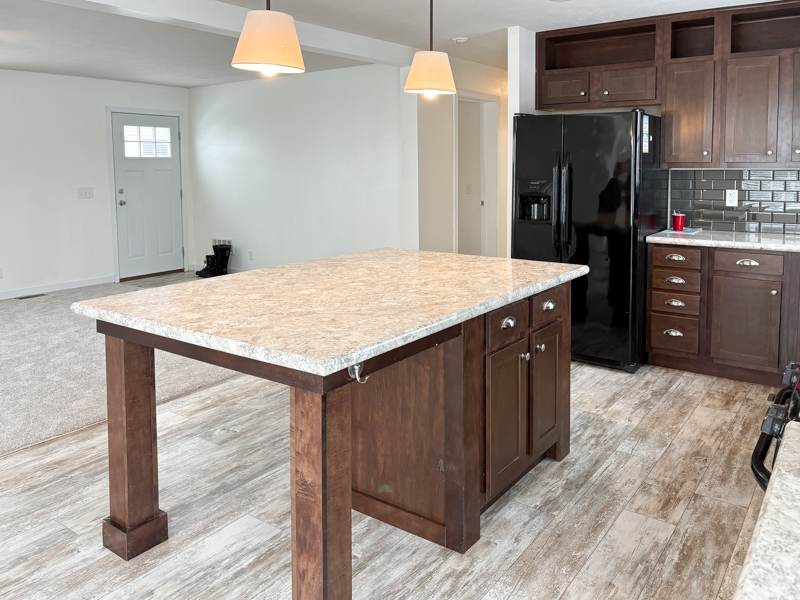 This 2017, Schult Home has a Spacious Living Room with a Ceiling Fan, New Carpet, & a Steel Door out to Wood Steps. The Island Kitchen has a Snack Bar & Plugs on the Island, Nice Lights above the Island, Nice Cabinets to the ceiling, Lots of Drawers, Tile Backsplash, a Stainless Steel Sink with an Upgraded Faucet, Lazy Susans in top & bottom Cabinet, a Frigidaire Side by Side Refrigerator & Gas Stove, Maytag Dishwasher, & a Whirlpool Built in Microwave. The Dining Area is open to the Island Kitchen & has a Door wall facing the Creek. The Laundry Room has a Frigidaire Washer & Dryer with Shelving above for Storage & a Steel Door out to Wood Steps. The Master Bedroom has a Nice Size Closet & The Master Bathroom has Double Porcelain Sinks, a Nice Vanity, Large Linen Closet, & a Stall Shower with Seats. This Home also includes Full Drywall, Flat Ceilings, Vinyl Windows, Some Upgraded Blinds, Upgraded White Interior Doors, 40 Gallon Hot Water Heater, Simulated Brick Skirting, 3 Car Parking, & a Vinyl Sided\Shingled Roof Shed with a Steel Door.