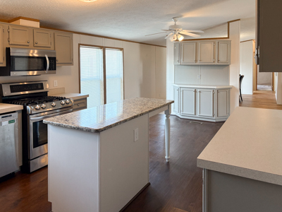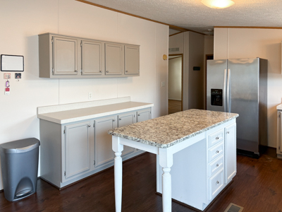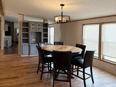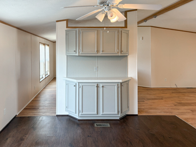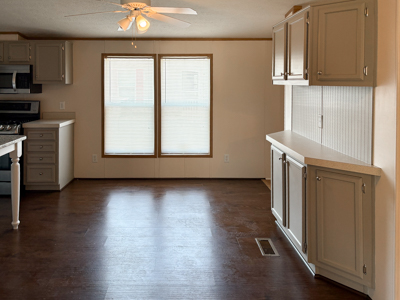 - Dining Area: ceiling fan and additional storage cabinets.