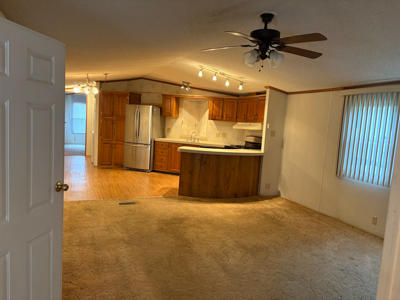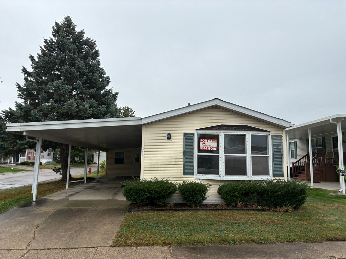 This 1991, Skyline Home has a Spacious Living Room with a Ceiling Fan & a Steel Door out to the Carport. The Open Kitchen has a Peninsula with Track Lighting above, Raised Panel Cabinets, Pantry Cabinets with Extra Shelving, Stainless Steel French Door Refrigerator with Bottom Freezer, Amana Gas Stove, Whirlpool Dishwasher, Laminate Floors, & is Open to the Dining Area. The Laundry Area has a Frigidaire Stackable Washer & Dryer, a Nice Cabinet for Storage, Laminate Floors, & a Door out to the Carport. The Master Bedroom has a Long Closet with a Built in Dresser & a Ceiling Fan. The Master Bathroom has a Porcelain Sink, Medicine Cabinets, Linen Cabinets, Shelving above Toilet, & a Nice Walk-in Shower with Grab Bars, Doors, & Double Shower heads. Front Bedroom 2 has a Bay Window, a TV Mount, & a Long Closet. The Main Bathroom has a Newer Vanity with a One Piece Sink\Counter & Upgraded Faucet, a One Piece Bathtub\Shower, & Laminate Floors. This Home also includes Blinds, a Newer Furnace, Landscaping, Gutters, Full Carport, & a Vinyl Sided\Shingled Roof Shed with Shelving & Electric. For More Information or to View This Home Please Contact Michelle Govaere at (810)650-0558!