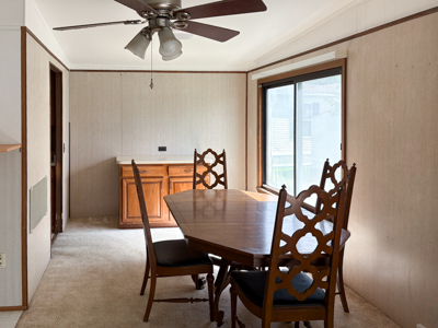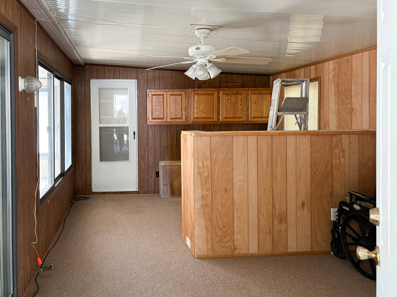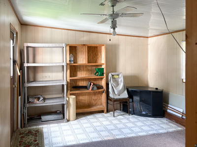 - Large Sunroom: Ceiling fan, storage cabinets, steel door to carport and a back door that leads into the extra storage room.