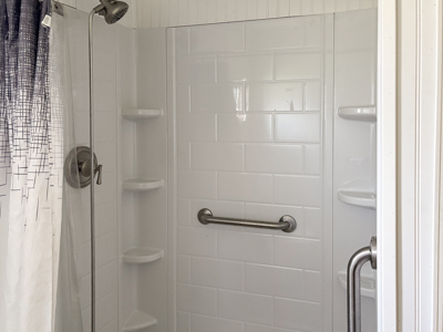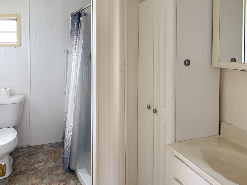 - Full Bathroom: Newer vanity, linen cabinets, linen closet, medicine cabinet, and a new walk-in shower with grab bars. (Toilet needs repair.)
