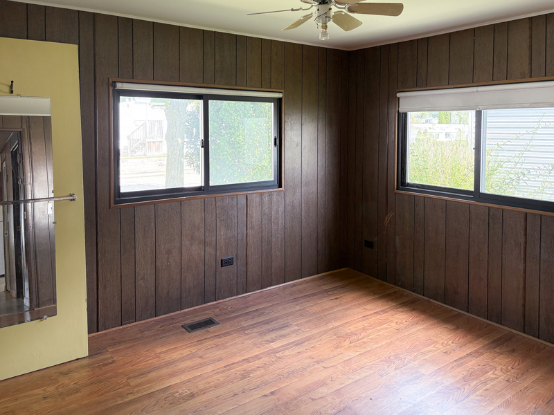 - Second Bedroom: Large walk-in closet and ceiling fan.