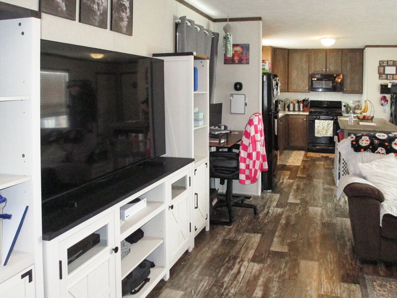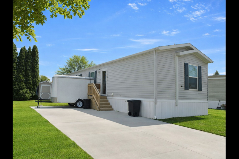 Why buy new when you can purchase this beautiful 2022 Clayton manufactured home offering 1,152 square feet of comfortable living space in the desirable Chippewa Valley School District. This well-maintained home features a bright, open-concept layout connecting the kitchen and living room, creating a spacious and inviting atmosphere ideal for everyday living or entertaining. The kitchen showcases rich espresso cabinetry, a convenient center island, and newer black appliances including a gas stove, along with attractive high-end vinyl plank flooring throughout the home.