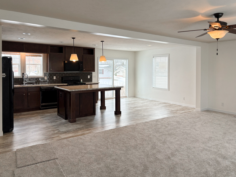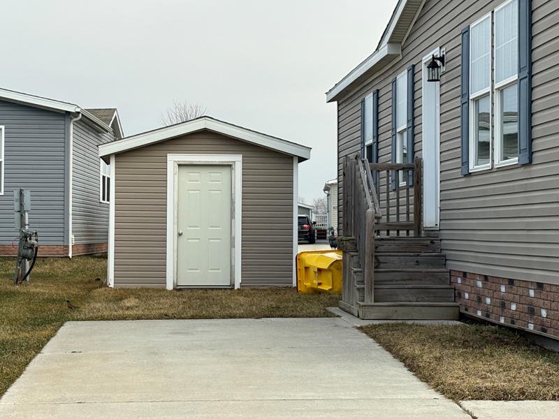 This 2017, Schult Home has a Spacious Living Room with a Ceiling Fan, New Carpet, & a Steel Door out to Wood Steps. The Island Kitchen has a Snack Bar & Plugs on the Island, Nice Lights above the Island, Nice Cabinets to the ceiling, Lots of Drawers, Tile Backsplash, a Stainless Steel Sink with an Upgraded Faucet, Lazy Susans in top & bottom Cabinet, a Frigidaire Side by Side Refrigerator & Gas Stove, Maytag Dishwasher, & a Whirlpool Built in Microwave. The Dining Area is open to the Island Kitchen & has a Door wall facing the Creek. The Laundry Room has a Frigidaire Washer & Dryer with Shelving above for Storage & a Steel Door out to Wood Steps. The Master Bedroom has a Nice Size Closet & The Master Bathroom has Double Porcelain Sinks, a Nice Vanity, Large Linen Closet, & a Stall Shower with Seats. This Home also includes Full Drywall, Flat Ceilings, Vinyl Windows, Some Upgraded Blinds, Upgraded White Interior Doors, 40 Gallon Hot Water Heater, Simulated Brick Skirting, 3 Car Parking, & a Vinyl Sided\Shingled Roof Shed with a Steel Door.