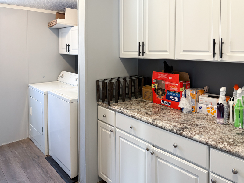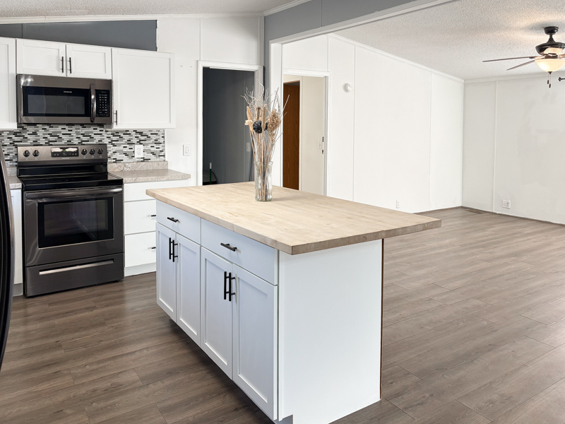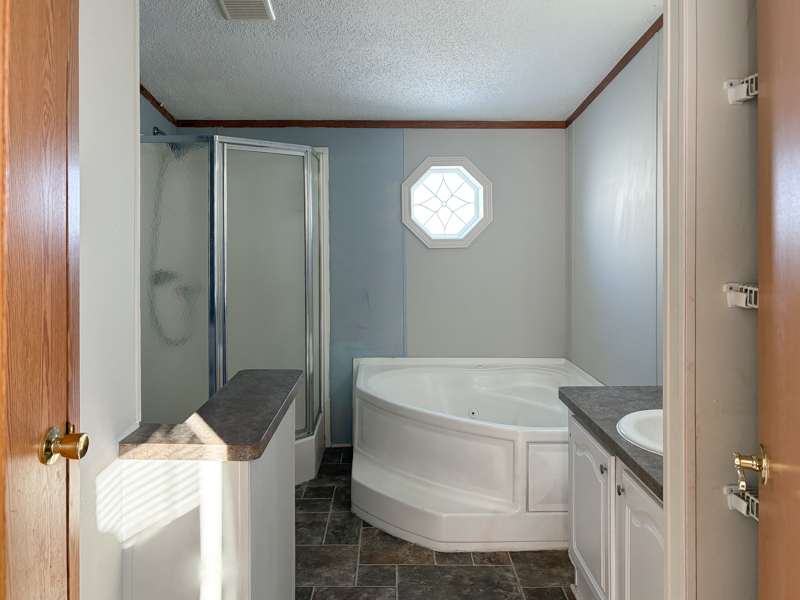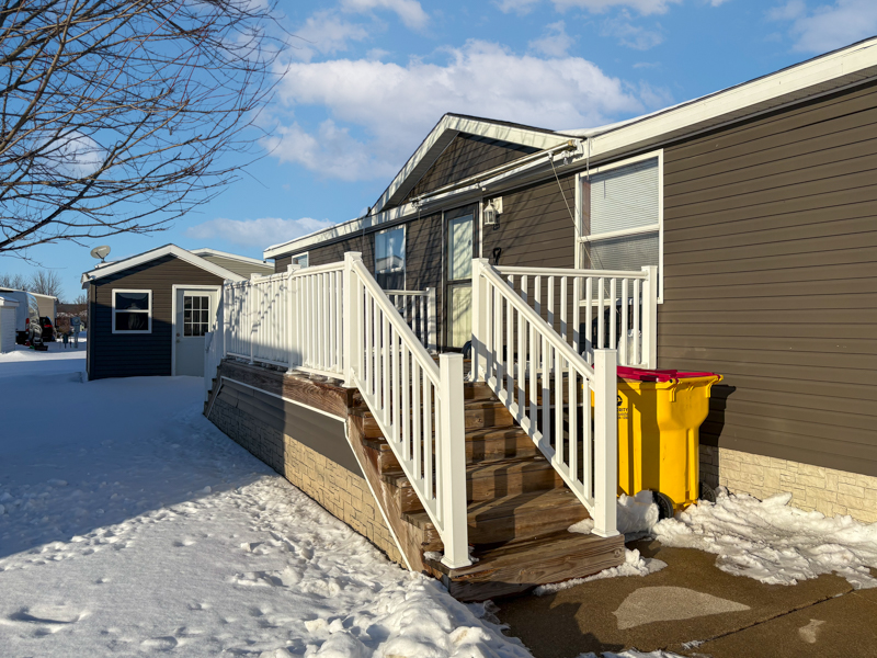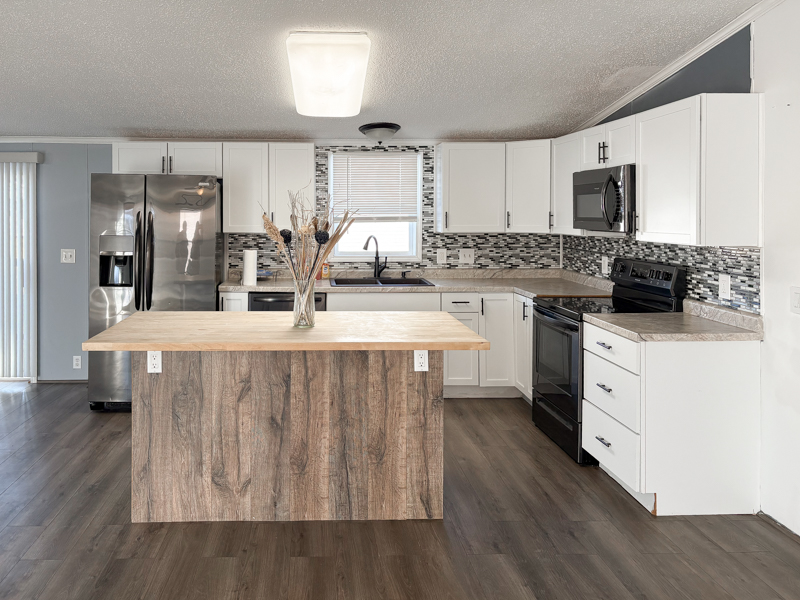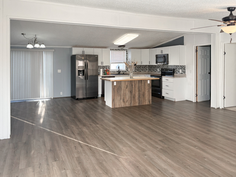 This 2000, Patriot Home has a Spacious Living Room with a Ceiling Fan & a Steel Door out to the Deck. The Island Kitchen has Real House Cabinets with Nice Handles, Lots of Large Drawers, an Upgraded Double Sink with an Upgraded Faucet, Butcher Block Counter & Plugs on the Island, Snack Bar, Lazy Susan, Nice Backsplash, Garbage Disposal, & Newer Black Stainless Frigidaire Appliances including a Side by Side Refrigerator with water & ice on the door, Electric Stove, Dishwasher, & Built in Microwave. The Dining Room is Open to the Kitchen & has a Door wall out to Wood Steps. The Large Laundry Room has a Whirlpool Washer & Dryer with Cabinets above & Extra Cabinets\Counter & Storage Space. The Den has Double Doors & can be used as a 5th bedroom. The Master Bedroom has a Keypad on the Door, a Ceiling Fan & a HUGE Walk-in Closet. The Master Bathroom has a Porcelain Sink, Linen Closet, Shelving for Linens, Half Wall by the Toilet, a Decorative Octagon Window, a Corner Stall Shower, & a Jetted Tub (may need repairs). Bedrooms 2, 3 & 4 are a Great Size & have Ceiling Fans. The Main Bathroom has a Porcelain Sink with an Upgraded Faucet & a One Piece Bathtub\Shower with Doors & a Newer Shower head.