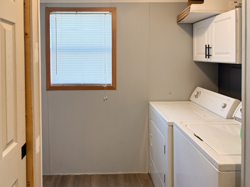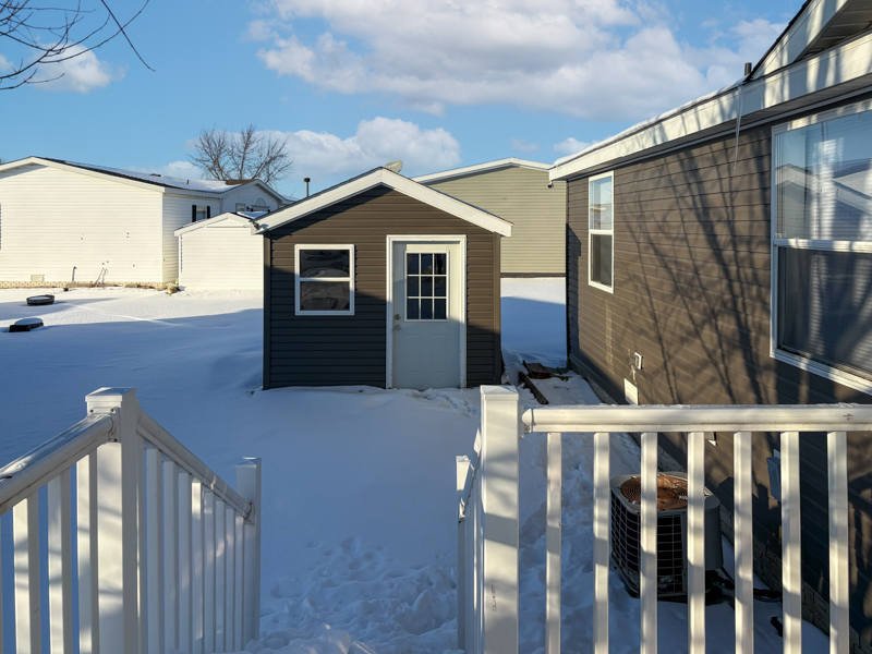 This Home also includes Laminate Floors Through-out in 2022 except Master Bedroom & both Bathrooms, Newer Light Fixtures, Blinds, a Security System, Vinyl Windows, Newer Electric Hot Water Heater, Furnace (new parts) & Air Serviced, 3 Car Parking, Simulated Brick Skirting, Newer Wood Deck with Vinyl Rails, & a Vinyl Sided\Shingled Roof Shed with Electric, a Window, & a Nine Lite Door.