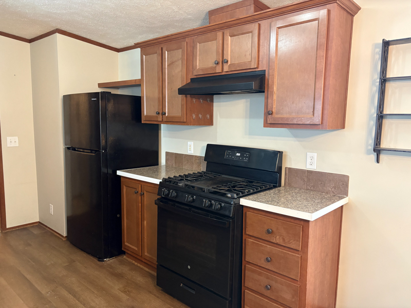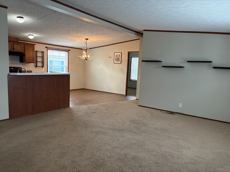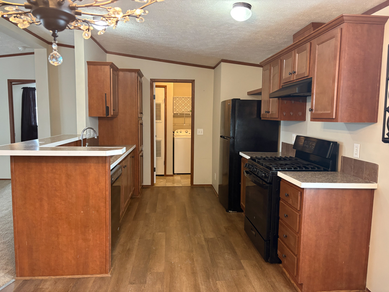 This 2014, Redman Home has a Spacious Living Room with a Steel Door out to Wood Steps & a Handicap Ramp. The Open Kitchen has a Stainless Steel Sink with an Upgraded Faucet, Nice Maple Cabinets, Pantry Cabinets with a Lazy Susan & Pull out, Raised Snack Bar, a Frigidaire Refrigerator, Newer GE Gas Stove, Whirlpool Dishwasher, Garbage Disposal, & Laminate Floors. The Dining Room is Open to the Kitchen & has Laminate Floors. The Laundry Room has a Newer Whirlpool Washer & Dryer with Shelving above & a Steel Door out to Wood Steps. The Master Bedroom has a Nice Walk-in Closet & the Master Bathroom has a Higher Vanity with a Porcelain Sink, a Large Linen Closet, a Cabinet above the Toilet, & a One Piece Bathtub\Shower with a Recessed Light above. Bedrooms 2 & 3 are a Great Size with Nice Size Closets. The Main Bathroom has a Higher Vanity with a Porcelain Sink & a One Piece Bathtub\Shower with a Recessed Light above. This Home also includes Nice White Six Panel Doors, Vinyl Windows, Full Drywall, Upgraded Blinds, a Vinyl Sided\Shingled Roof Shed with a Steel Door, & a Nice Size Back Yard!